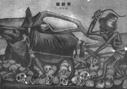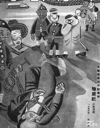 张仃首创“记实漫画”《验尸记》(图4,原载1937年5月20日《时代漫画》),张仃为这张漫画配了文字,我以为这是漫画里的“阿Q正传”,意义别具。